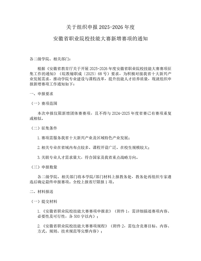 关于组织申报2025-2026年度安徽省职业院校技能大赛新增赛项的通知