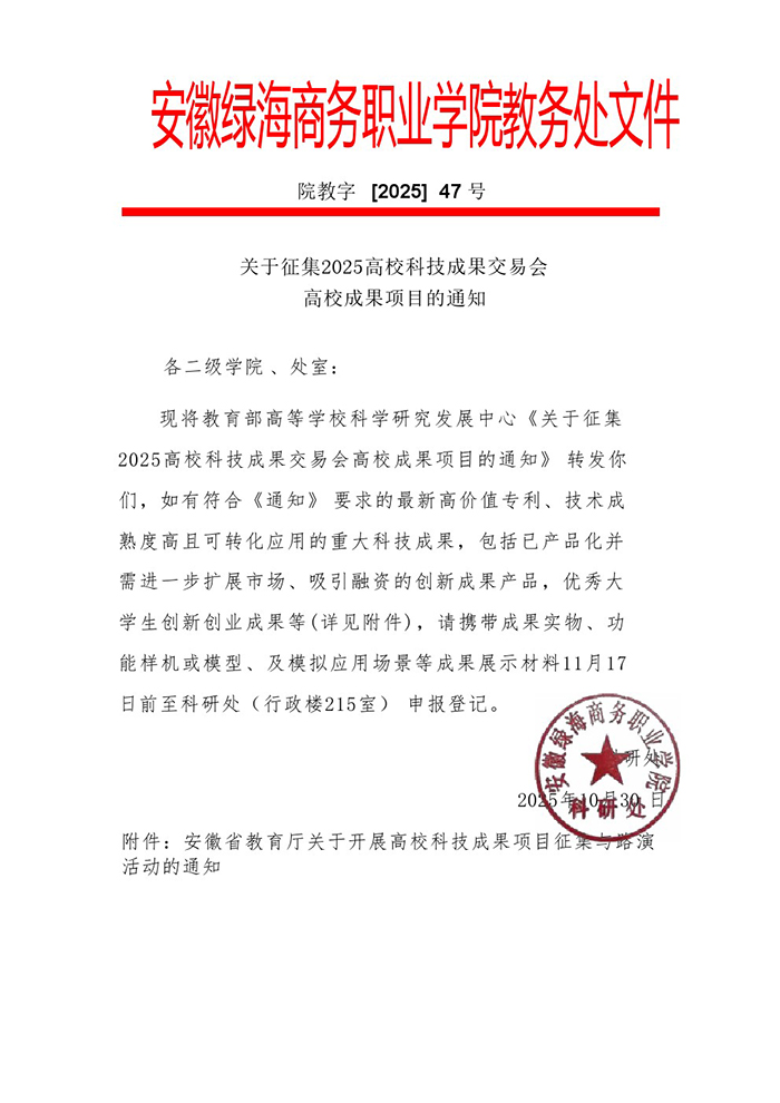 附件:关于征集2025高校科技成果交易会高校成果项目的通知