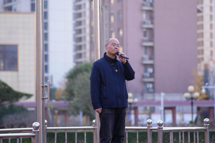 数字商贸与直播学院副院长华夏君讲话中强调,学院始终坚守立德树人根本任务,紧扣 “培养高素质应用型人才” 目标,引导学生要以学促管、以实践强本领,勉励同学们以本次升旗仪式为新起点,不负韶华、不负时代。