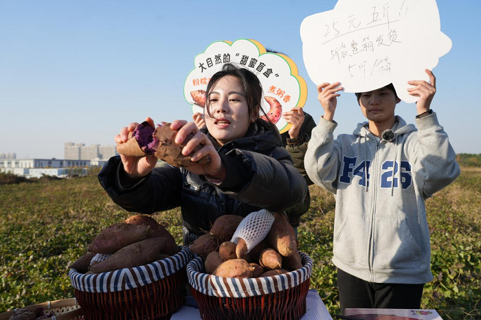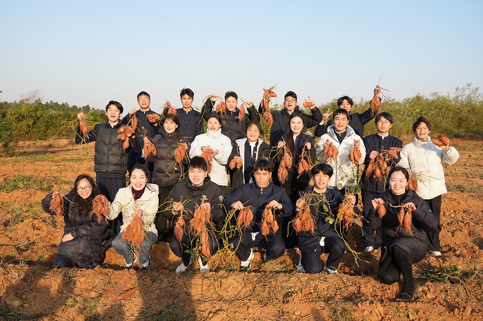 近日,数字商贸与直播学院40余名师生奔赴湾沚区千亩红薯种植基地,将直播镜头架在田间地头,开展了一场 “党建红+专业蓝+乡村绿” 的沉浸式助农实践活动。田埂上,学生主播实地讲解产品优势;田垄间,党员教师带头采收、现场教学,师生协同完成一场别开生面的主题党日活动。活动历时4小时,直播间吸引观众超6万人次,销售额突破3万元,带动当地红薯线上订单增长11%,既彰显了学院党建引领专业发展的育人成效,也为同学们搭建了学以致用的实践平台。