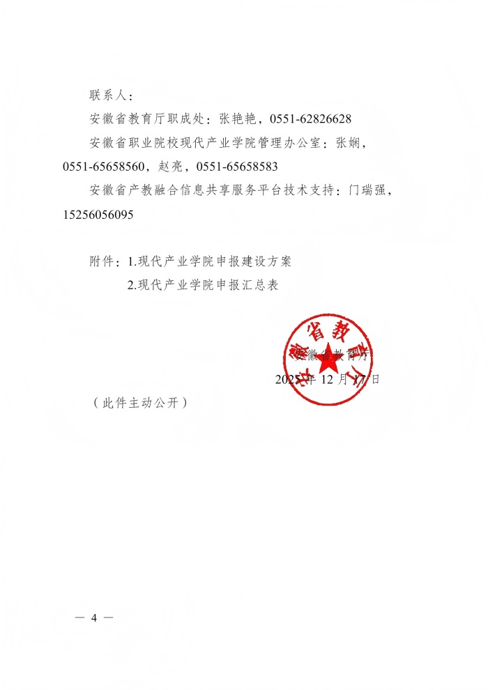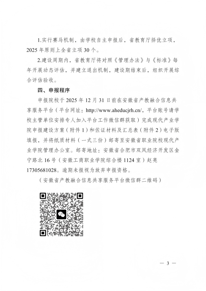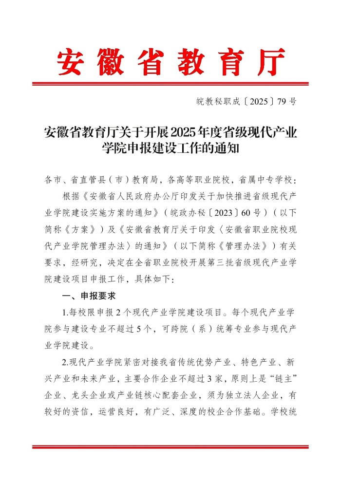 下载链接:/安徽省教育厅关于开展2025年度省级现代产业学院申报建设工作的通知.pdf